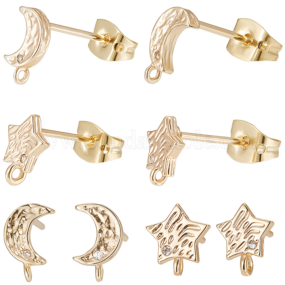 6шт. 2 фурнитура для сережек-гвоздиков в стиле звезды и луны из латуни с кубическим цирконием, с вертикальной петлей, с фрикционными гайками 12шт.