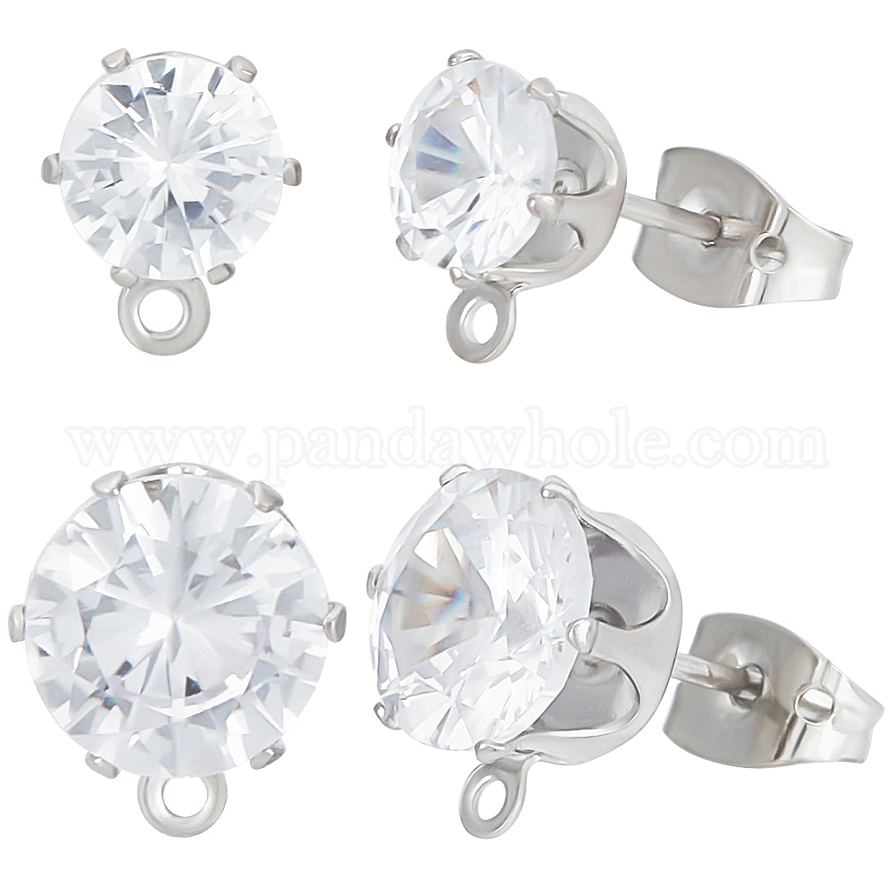 12 пара 2 стиль ромбовидная форма латунные серьги-гвоздики фурнитура, с фианитом, 316 штифтом из хирургической нержавеющей стали и горизонтальными петлями, с ушными гайками 24 шт.