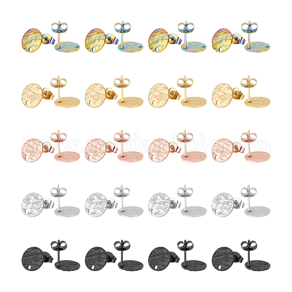 40 шт. 5 цвета 304 детали серьги-гвоздики из нержавеющей стали, с спинкой для сережек и отверстиями, , плоско-круглые