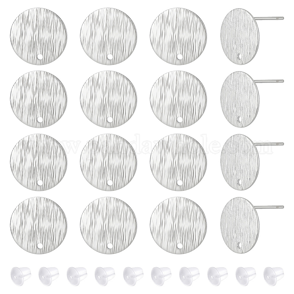 16 шт. латунные серьги-гвоздики, текстурированный плоский круглый, с 50 пластиковыми ушными гайками