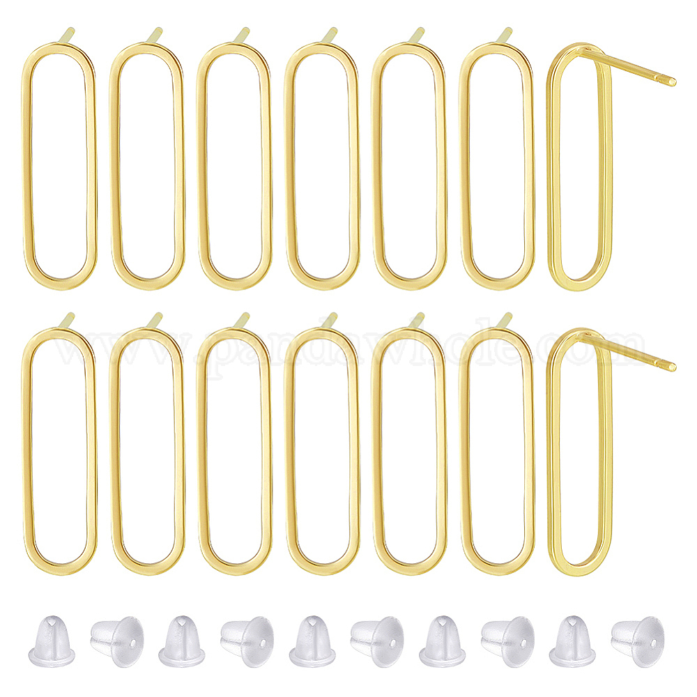 10шт. полые овальные стойки с покрытием из латуни для сережек-гвоздиков, с 50 пластиковыми ушными гайками