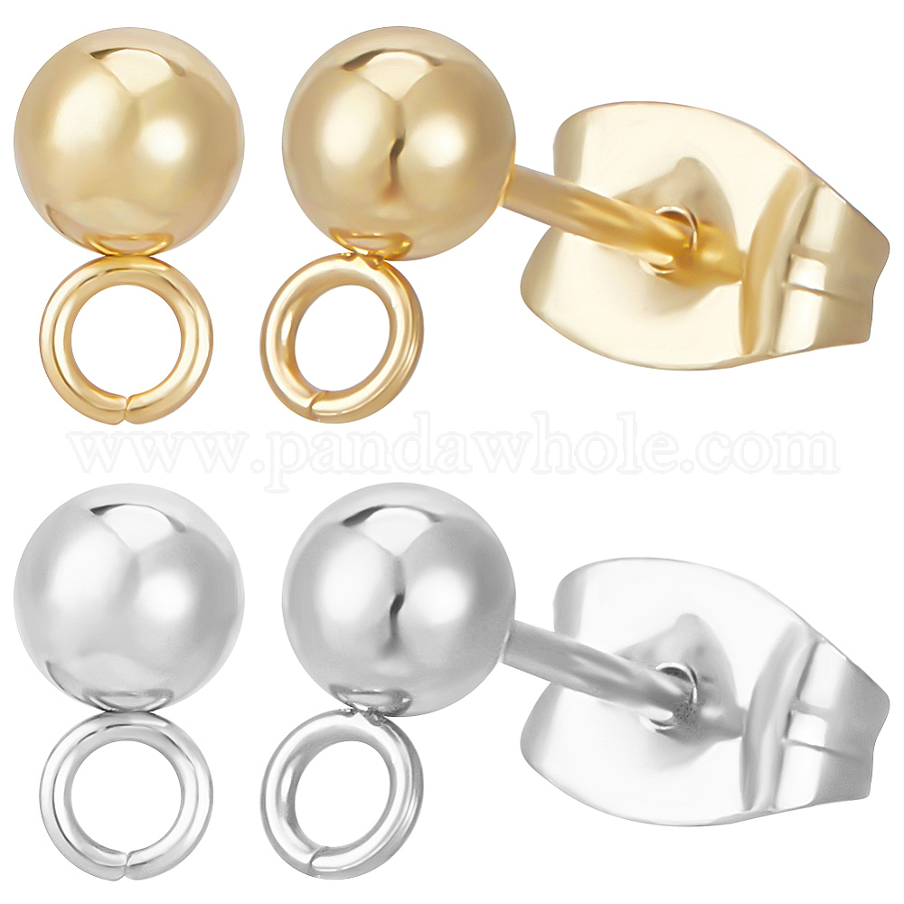 100 шт. 2 стиль 304 фурнитура для сережек-гвоздиков с круглым шариком из нержавеющей стали, с горизонтальными петлями, 50 ушные гайки