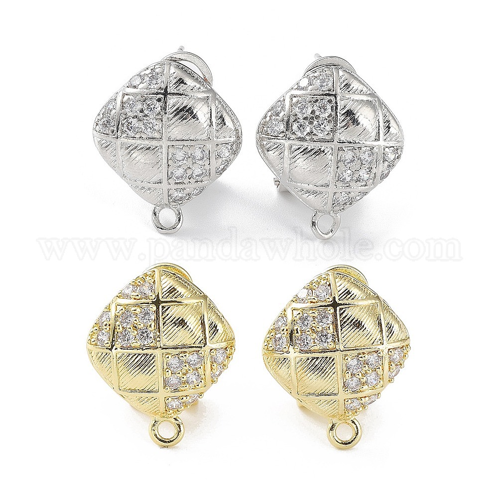 Серьги-гвоздики из латуни с микропаве в форме ромба и кубического циркония, с горизонтальными петлями, без кадмия и без свинца