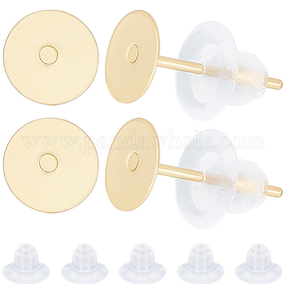 • Настоящее золото 24K 100 шт 304 детали серьги-гвоздики из нержавеющей стали, плоско-круглые, 100 гайки ушные пластиковые, реальный 24 k позолоченный, штифты : 0.7 мм, гайка: 5x7 мм, отверстие : 0.8 мм
