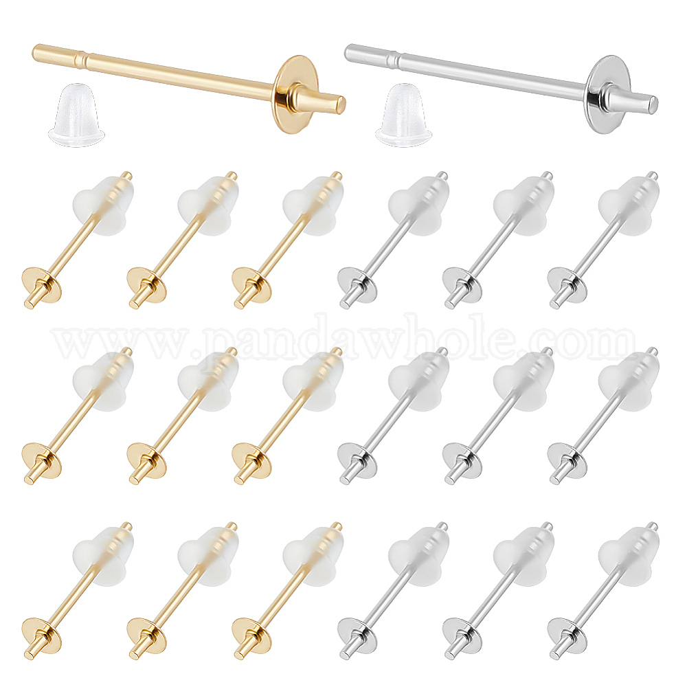 200шт. 2 цвет 304 фурнитура для сережек-гвоздиков из нержавеющей стали, за половину пробурено бисера, с 300 пластиковыми ушными гайками