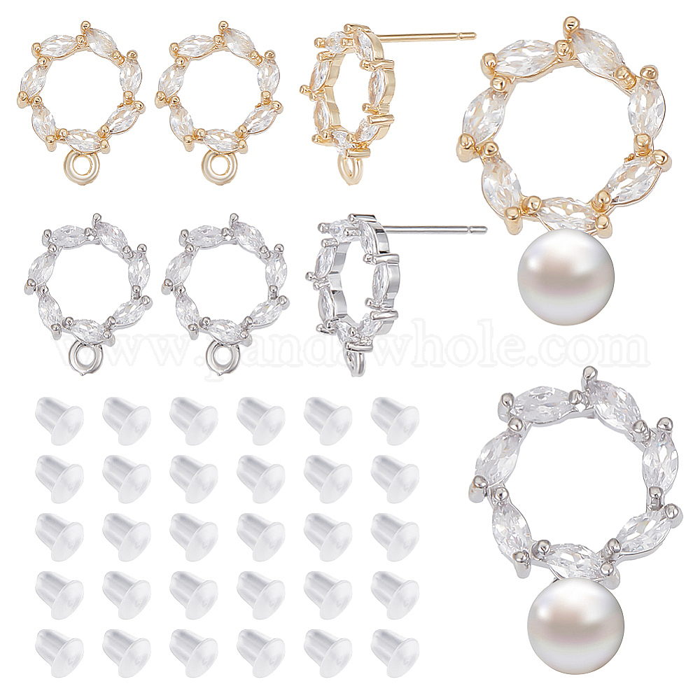 8 шт. 2 цвета пончик форма латунный кубический цирконий серьги-гвоздики фурнитура, со булавками из стерлингового серебра, горизонтальной петлей и 30 пластиковыми ушками для ушей