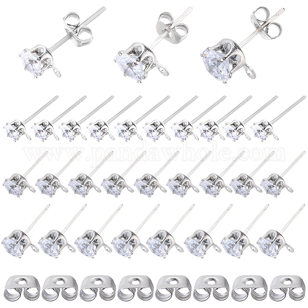 60шт. 3 размер прозрачный кубический цирконий серьги-гвоздики фурнитура, с родиевым покрытием 925 штифты из стерлингового серебра и горизонтальные петли, с печатью s925, 60 шт. Латунные гайки для ушей (02QE2T)