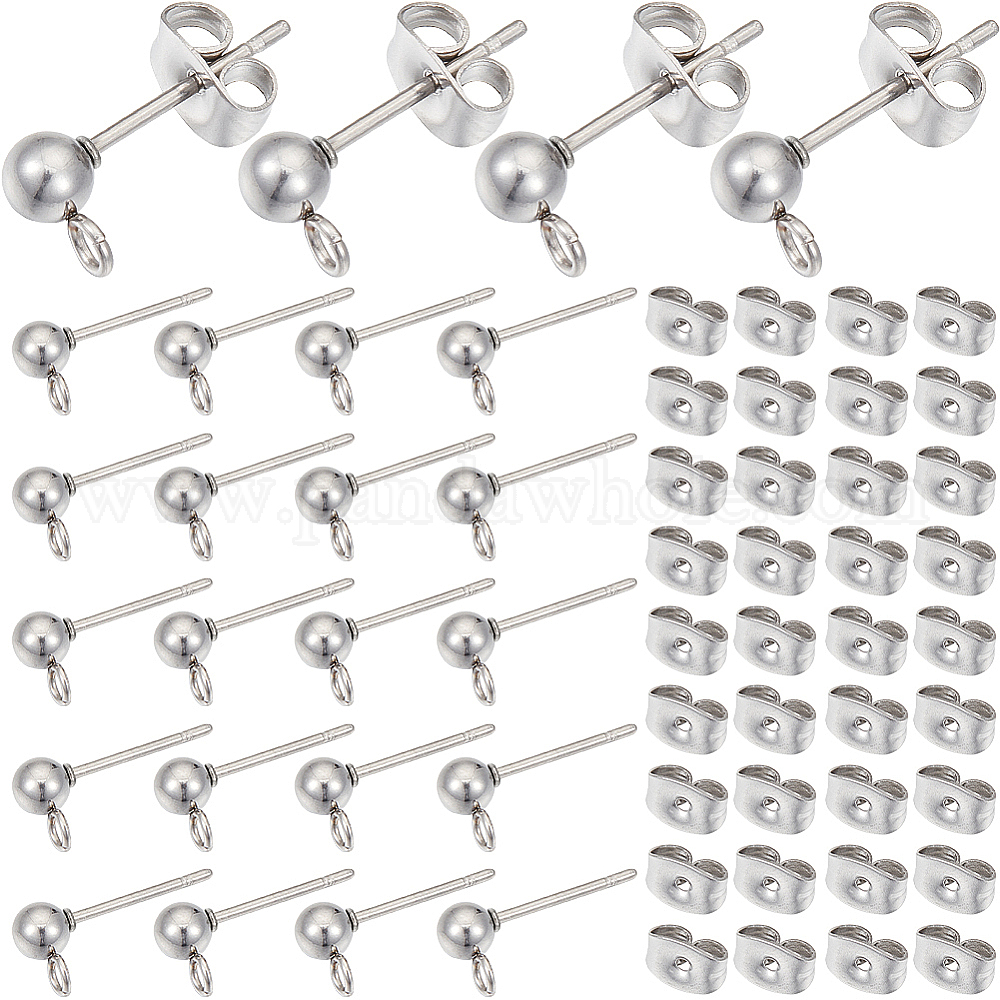 100 шт 304 детали серьги-гвоздики из нержавеющей стали, с петлей и ушными гайками 100 шт.