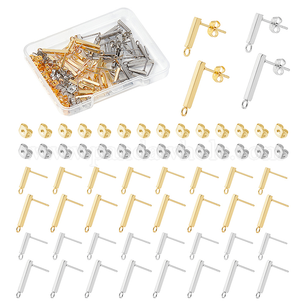 • (52) Непрозрачная лаванда 40 шт. 4 стиль 304 прямоугольная серьга-гвоздик из нержавеющей стали, с петлями, с ушными гайками 40 шт., настоящее золото и нержавеющая сталь, 13~18x3 мм, отверстие : 1.8 мм, штифты : 0.8 мм, 10 шт / стиль