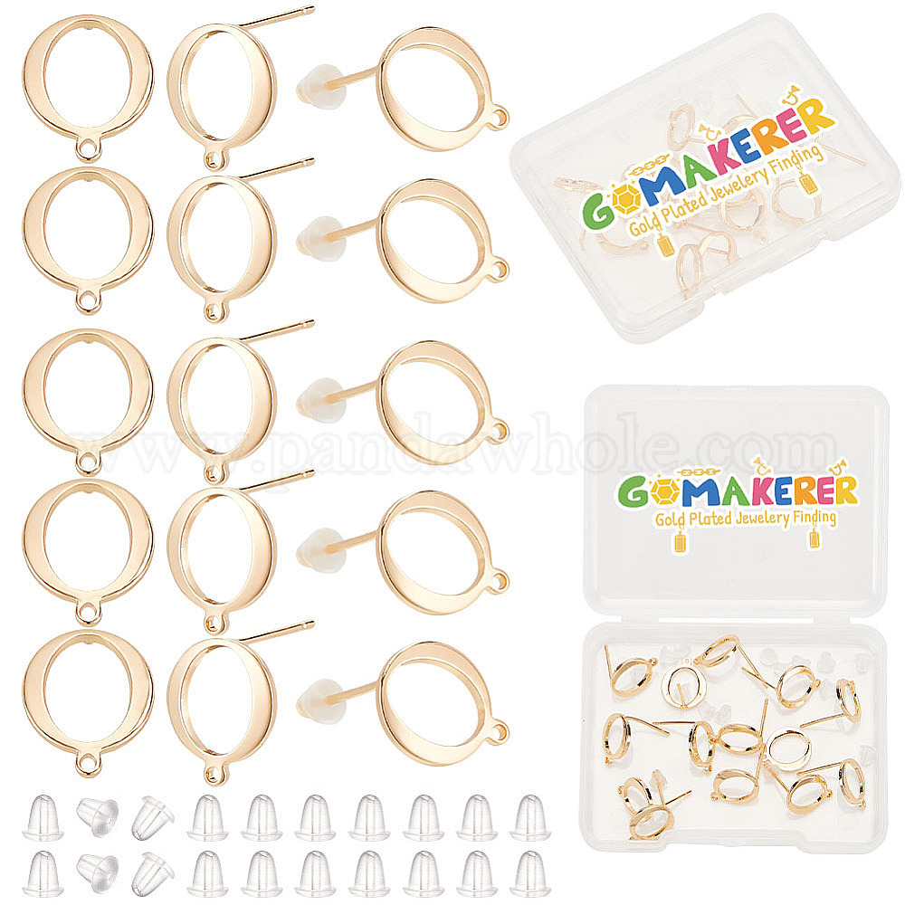 • Настоящее золото 18K 20шт. стойка покрытие латунь кольцо гвоздик серьги фурнитура, с петлями и пластиковыми ушными гайками 20шт., реальный 18 k позолоченный, 12x10 мм, отверстие : 1 мм, штифты : 0.8 мм