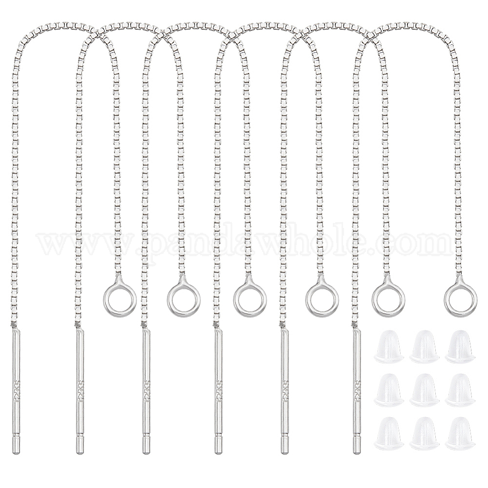 3 пары 925 фурнитура для сережек-гвоздиков из стерлингового серебра, со штампом 925 и петлями, нить, с 10 пластиковыми ушными гайками (02QR54)