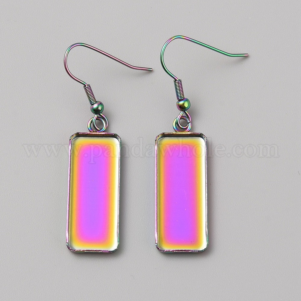 • Rainbow Color 304 фурнитура для висячих сережек из нержавеющей стали, прямоугольные, Радуга цветов, 47x11 мм, внутренний диаметр: 25.5 мм, штифты : 0.8 мм