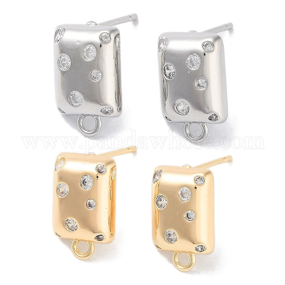 Латунные серьги-гвоздики из циркония, без кадмия, без никеля и без свинца, прямоугольные
