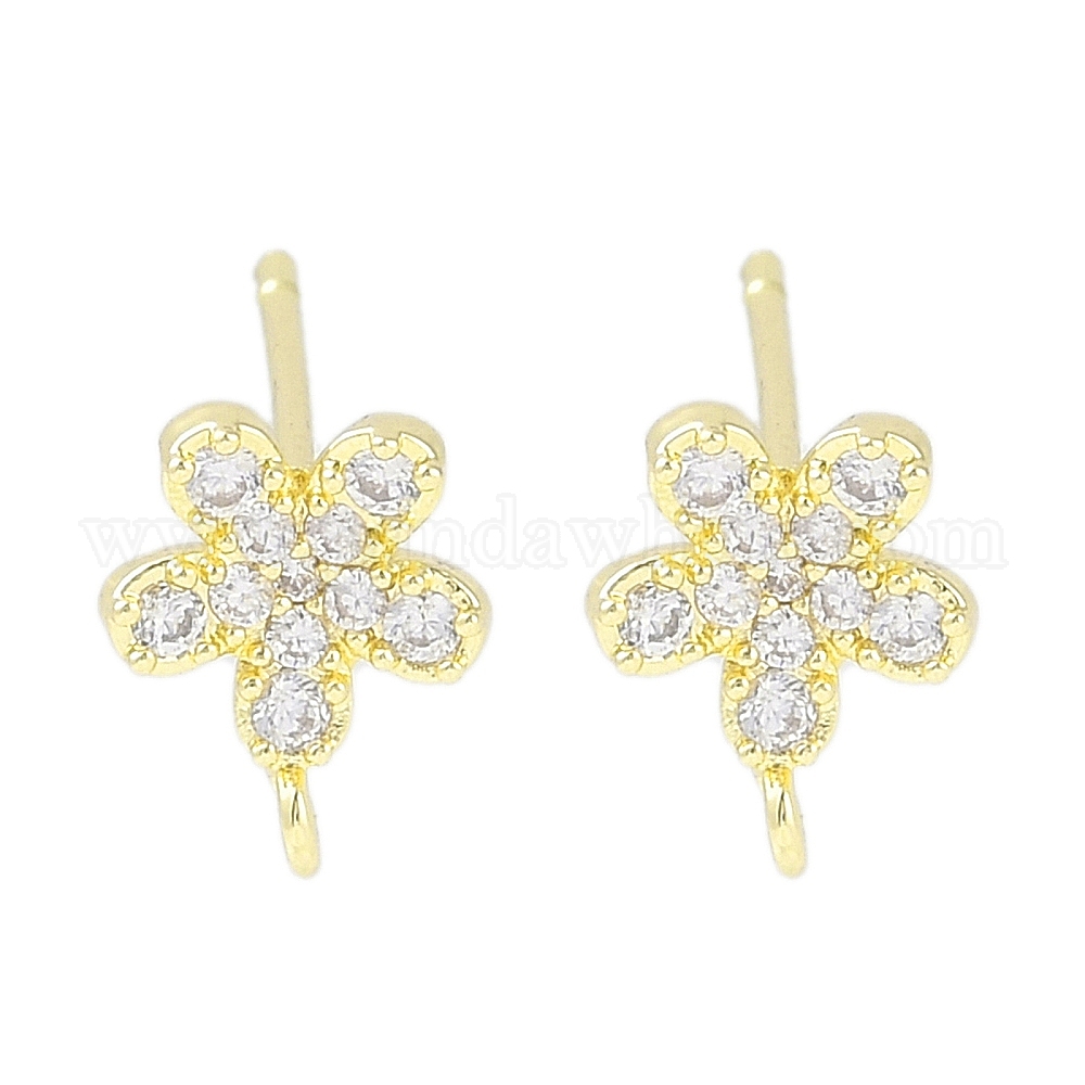 Фурнитура для серег-гвоздиков из латуни с паве из прозрачного кубического циркония, без кадмия, без никеля и без свинца, с петлей, цветок