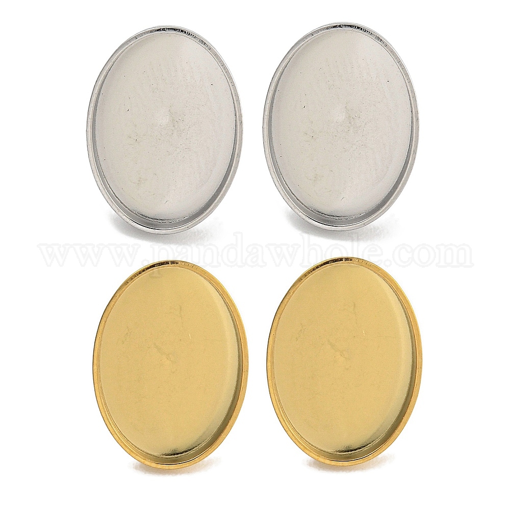 • Нержавеющая Сталь Цвет Антикоррозийная 304 фурнитура для сережек-гвоздиков из нержавеющей стали, для женщин, овальные, цвет нержавеющей стали, лоток : 14x10 мм, 15x11 мм
