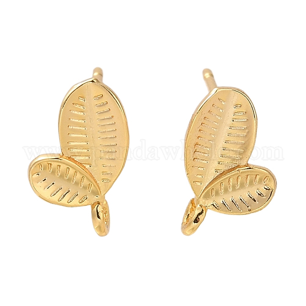 Латунные серьги-гвоздики поиск для женщин, лист, с петлей