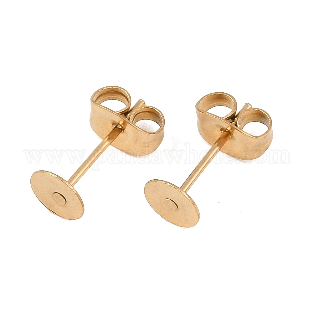 • Настоящее золото 18K Ионное покрытие (ip) 304 детали серьги-гвоздики из нержавеющей стали, плоско-круглые, реальный 18 k позолоченный, 4x0.3 мм, штифты : 0.7 мм