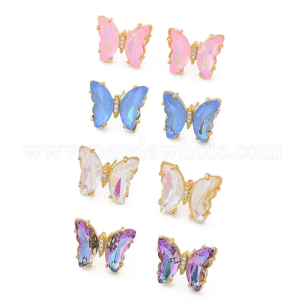 Фурнитура для сережек-гвоздиков из латуни и стекла, бабочка, без кадмия, без никеля и без свинца, золотые