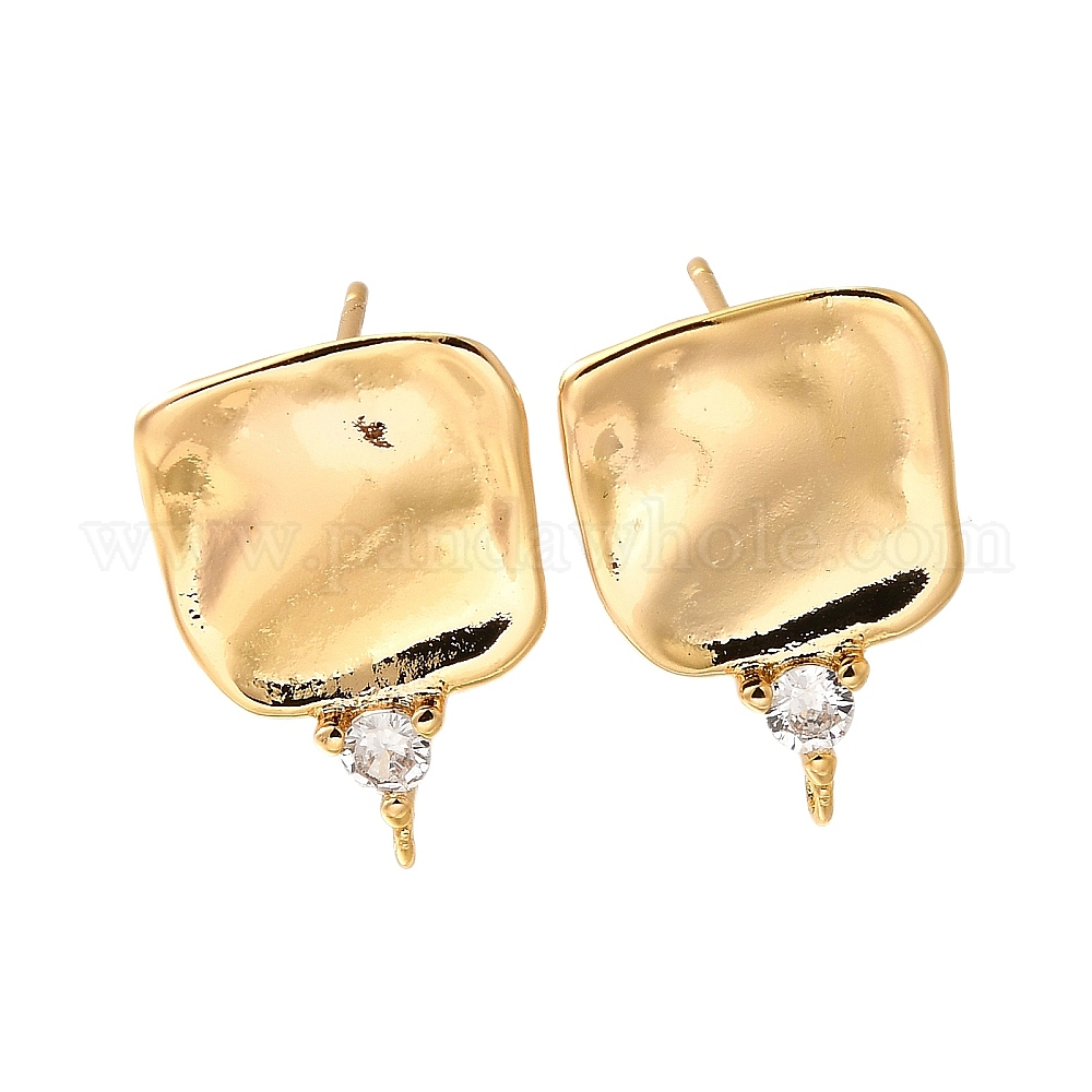 • Настоящее золото 18K Латунные серьги-гвоздики из циркония, квадратный, реальный 18 k позолоченный, 17.5x12.5 мм, отверстие : 1 мм, штифты : 0.8 мм