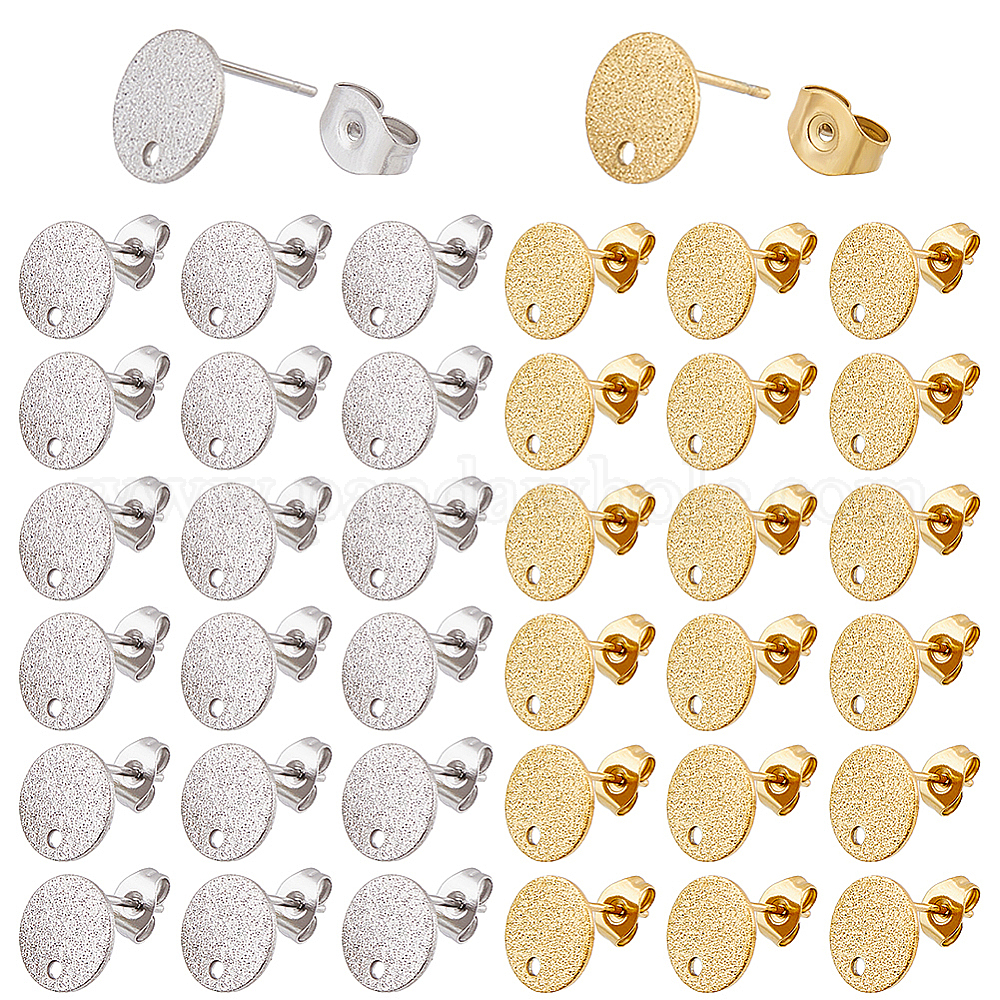 40 шт. 2 цвета 304 детали серьги-гвоздики из нержавеющей стали, с уха орехов, текстурированный плоский круглый