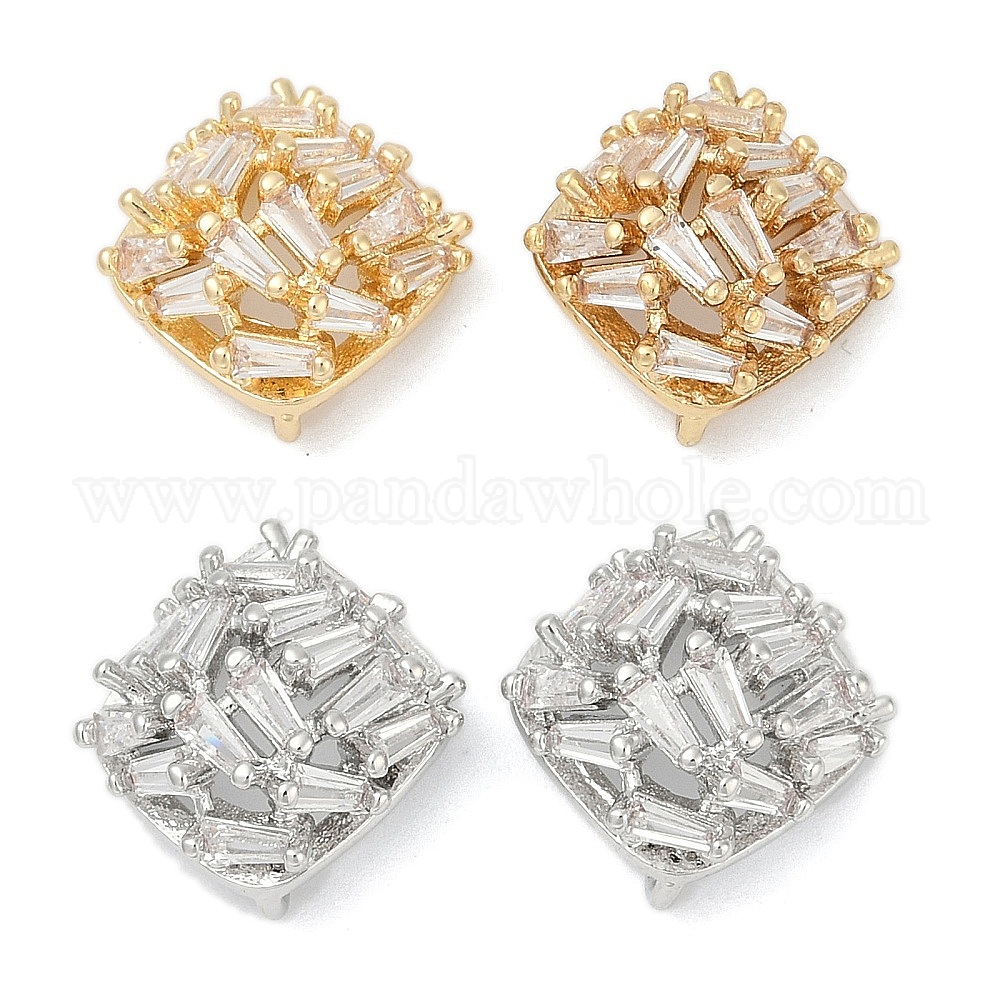 • Платина Латунные серьги-гвоздики из циркония, долговечный, без кадмия, без никеля и без свинца, квадратный, платина, 13.5x13 мм, отверстие : 1 мм