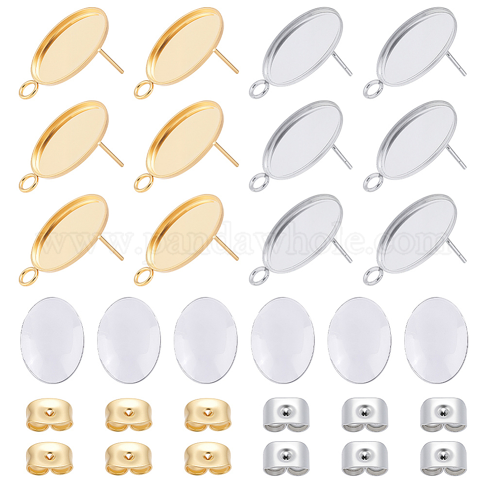 60 шт. 2 цвета 304 серьги-гвоздики из нержавеющей стали, овальные, со стеклянным кабошоном 60шт., 60шт. 2 цвета гайки для ушей