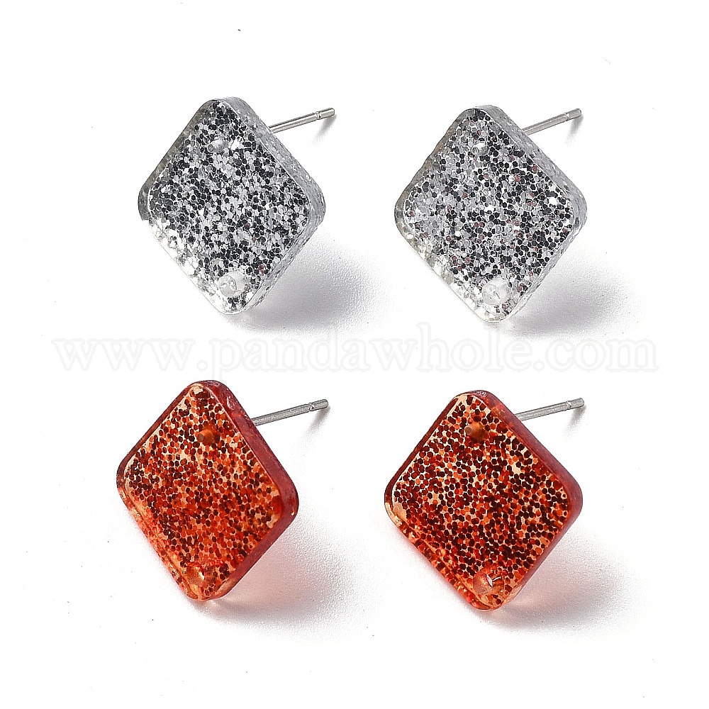 Акриловые серьги фурнитура, ромб, с 304 штифтами из нержавеющей стали и пайетками