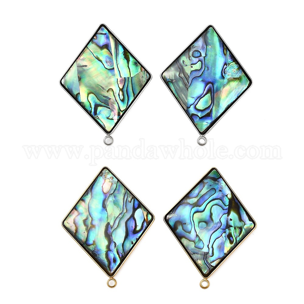 304 фурнитура для сережек-гвоздиков из натуральной ракушки пауа из нержавеющей стали, ромб, ионное покрытие (ip)