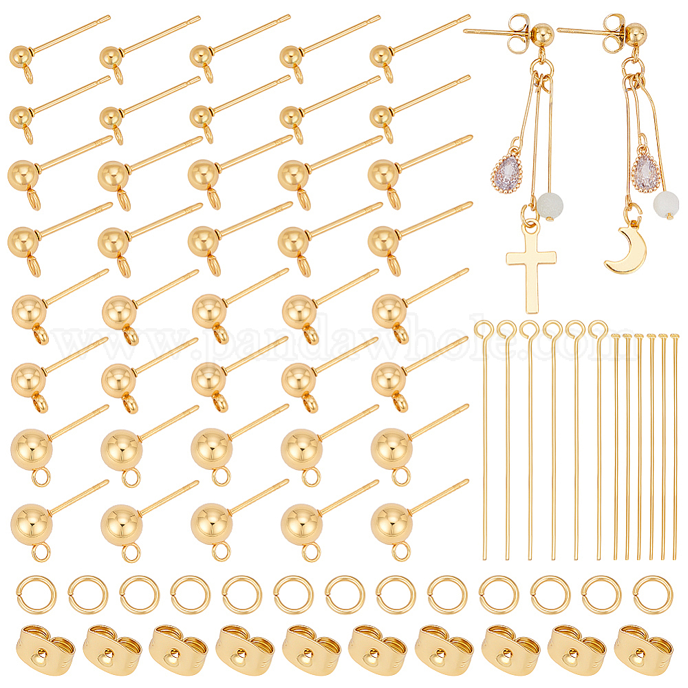 304 серьги-гвоздики из нержавеющей стали, с петлей и 316 хирургическим стержнем из нержавеющей стали, с ушной гайкой и штифтами с плоской головкой