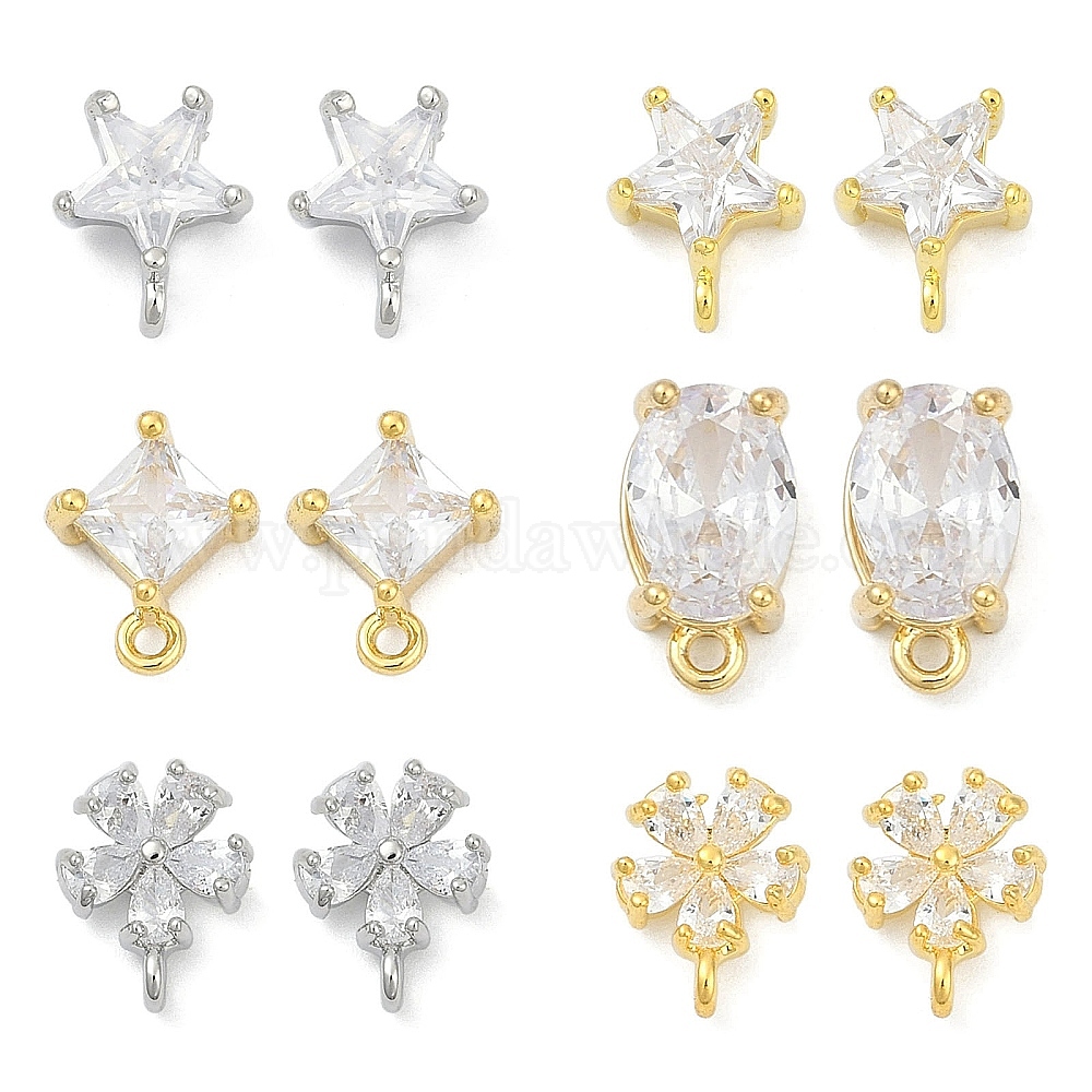 • Цветок Латунные микро-паве прозрачные серьги-гвоздики из циркония, без кадмия, без никеля и без свинца, с петлей, реальный 18 k позолоченный, цветок, 9.5x7.5 мм, отверстие : 1 мм, штифты : 0.8x11.5 мм