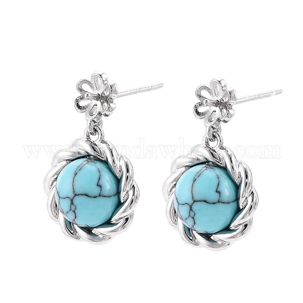 • Платина Фурнитура для сережек-гвоздиков из латуни и синтетической бирюзы, с 925 иглой из стерлингового серебра, за половину пробурено бисера, платина, 20x12.5 мм, штифты : 0.8 мм