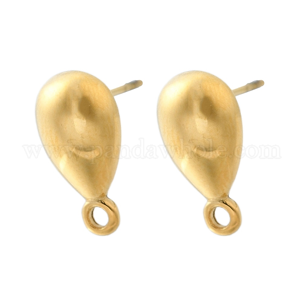 • Настоящее золото 14K 304 фурнитура для сережек-гвоздиков из нержавеющей стали, ионное покрытие (ip), слеза, реальный 14 k позолоченный, 12x6 мм, отверстие : 1.4 мм, штифты : 0.8x10.5 мм