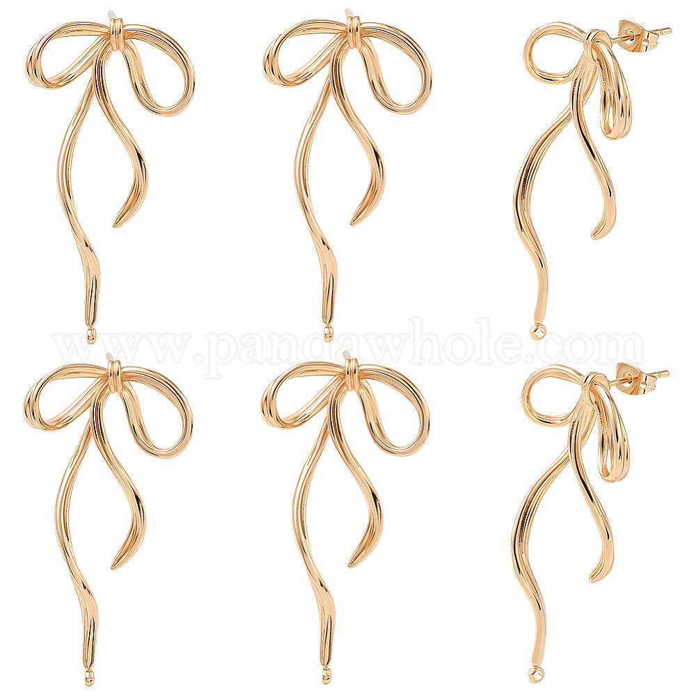 6шт. латунная фурнитура для сережек-гвоздиков, с петлей, бантом