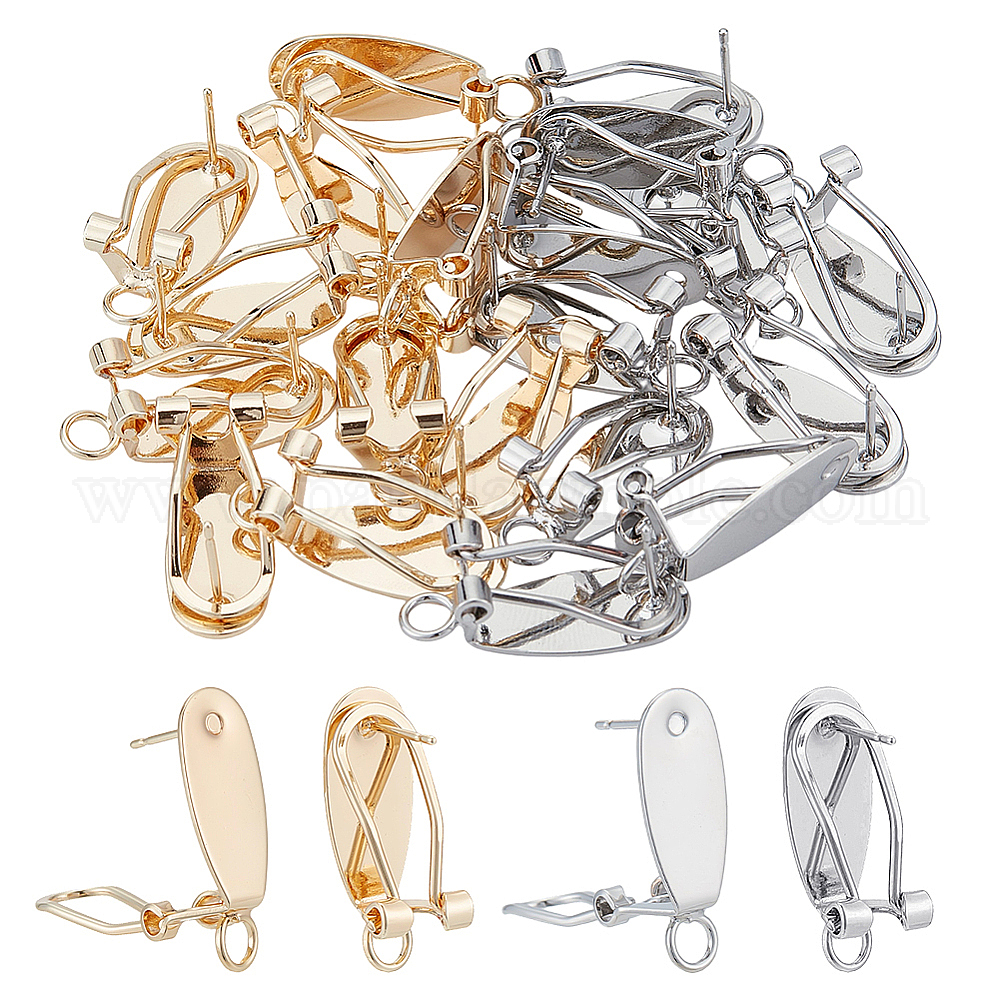 20шт. 2 цвета латунные серьги-гвоздики фурнитура, французские серьги-клипсы, с петлей, без никеля , реальный 18 k позолоченный