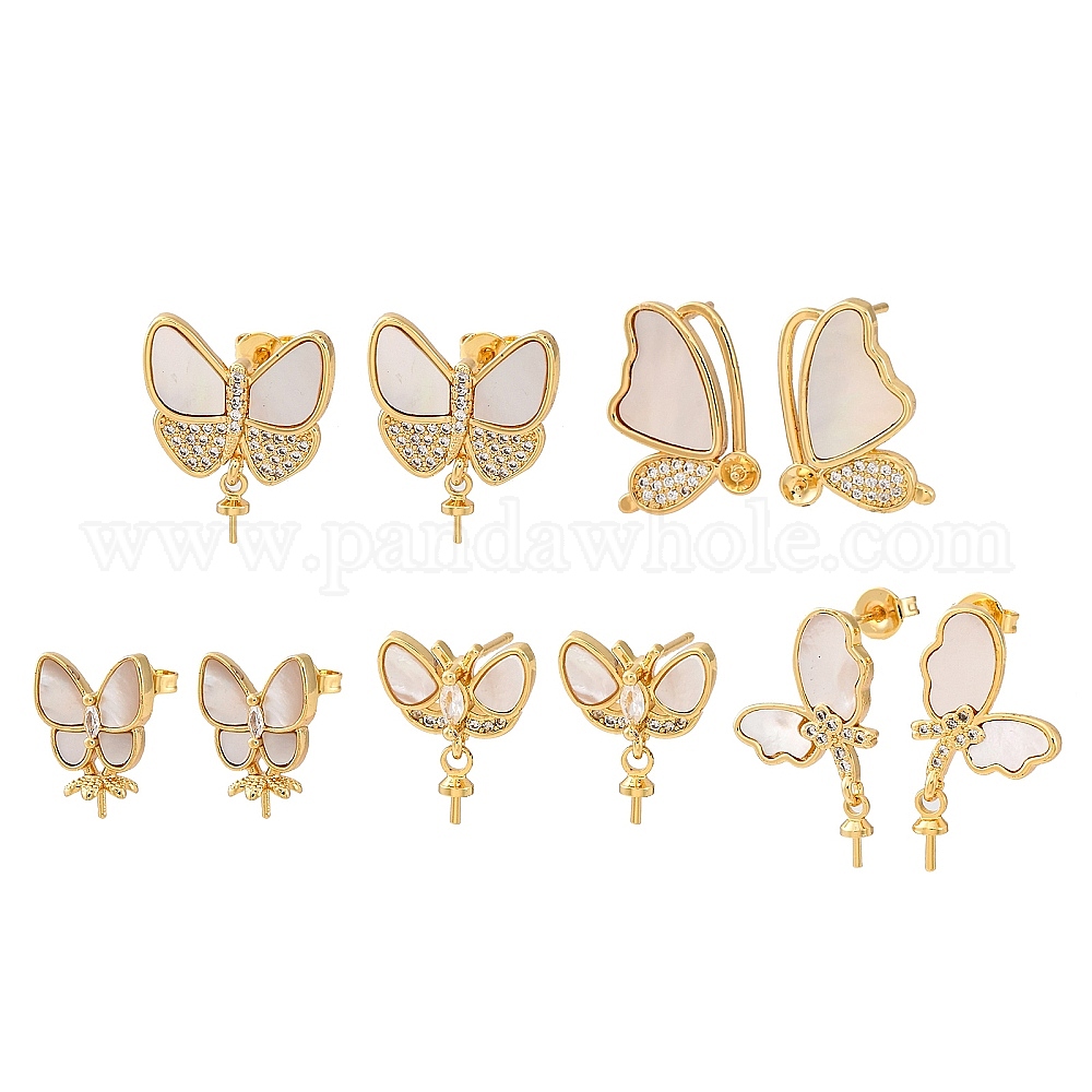 Фурнитура для серег-гвоздиков из латунных ракушек с микропаве из кубического циркония, за половину пробурено бисера, с уха орехов, бабочка, без кадмия и без свинца, стойки покрытие, долговечный