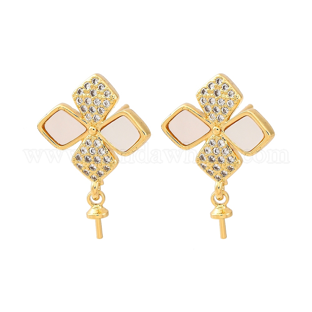 Фурнитура для серег-гвоздиков из латунных ракушек с микропаве из кубического циркония, за половину пробурено бисера, без кадмия и без свинца, стойки покрытие, долговечный