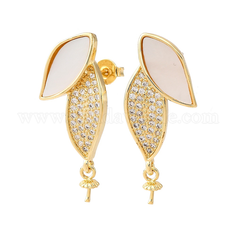 Фурнитура для серег-гвоздиков из латунных ракушек с микропаве из кубического циркония, за половину пробурено бисера, с уха орехов, без кадмия и без свинца, стойки покрытие, долговечный