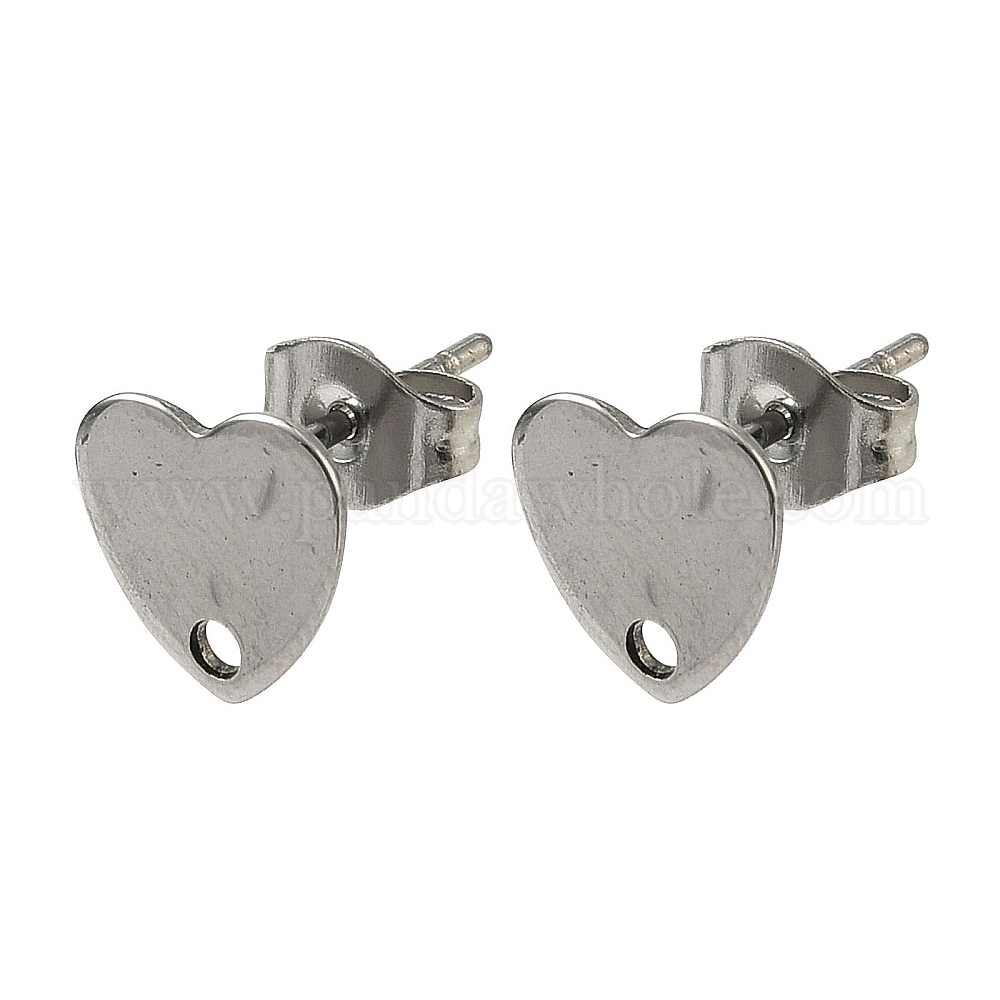 304 серьги-гвоздики из нержавеющей стали, с петлей и плоской пластиной, 8x8 мм, отверстие : 1 мм, штифты : 0.8 мм