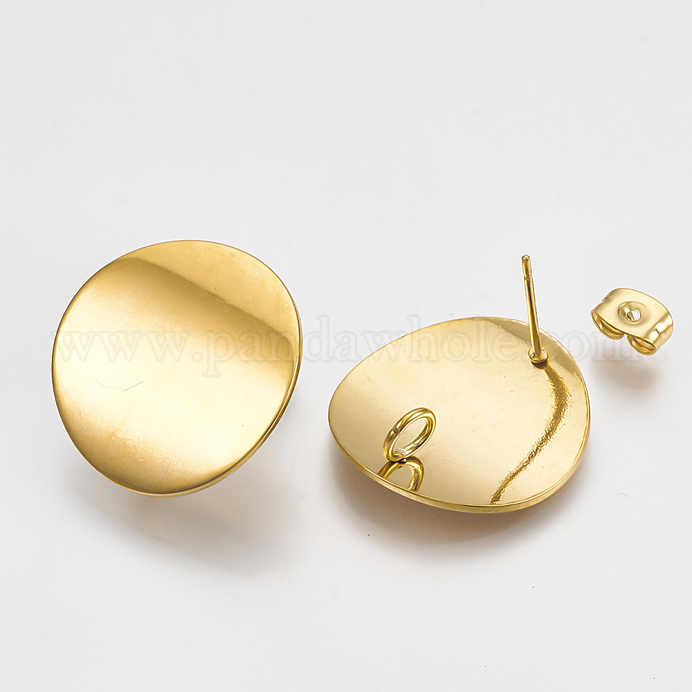 • Золотой Вакуумное покрытие pvd 304 фурнитура для сережек-гвоздиков из нержавеющей стали, с петлей, изогнутые, плоско-круглые, золотые, 20 мм, отверстие : 3 мм, штифты : 0.8 мм