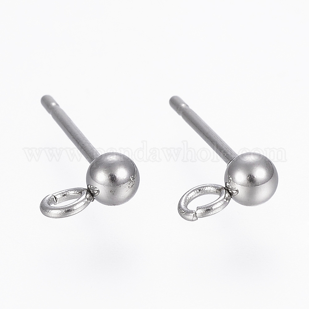 • Нержавеющая Сталь Цвет Не тускнеет 304 фурнитура для сережек-гвоздиков из нержавеющей стали, с петлей, круглые, цвет нержавеющей стали, 14x3 мм, отверстие : 2 мм, штифты : 0.8 мм, круглый : 3 мм