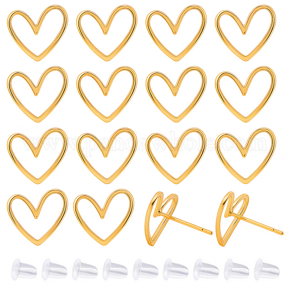 20шт. латунные серьги-гвоздики, с необработанными (непокрытыми) латунными штифтами, сердце, 30 гайки ушные пластиковые