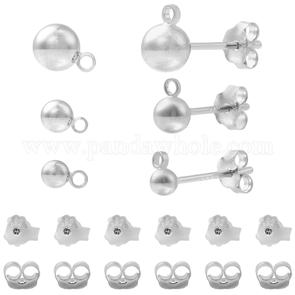 12шт. 3 стили серьги-гвоздики с круглыми шариками из стерлингового серебра, сережка с горизонтальной петлей, с печатью s925, 12 шт. 925 гайки-гвоздики из стерлингового серебра
