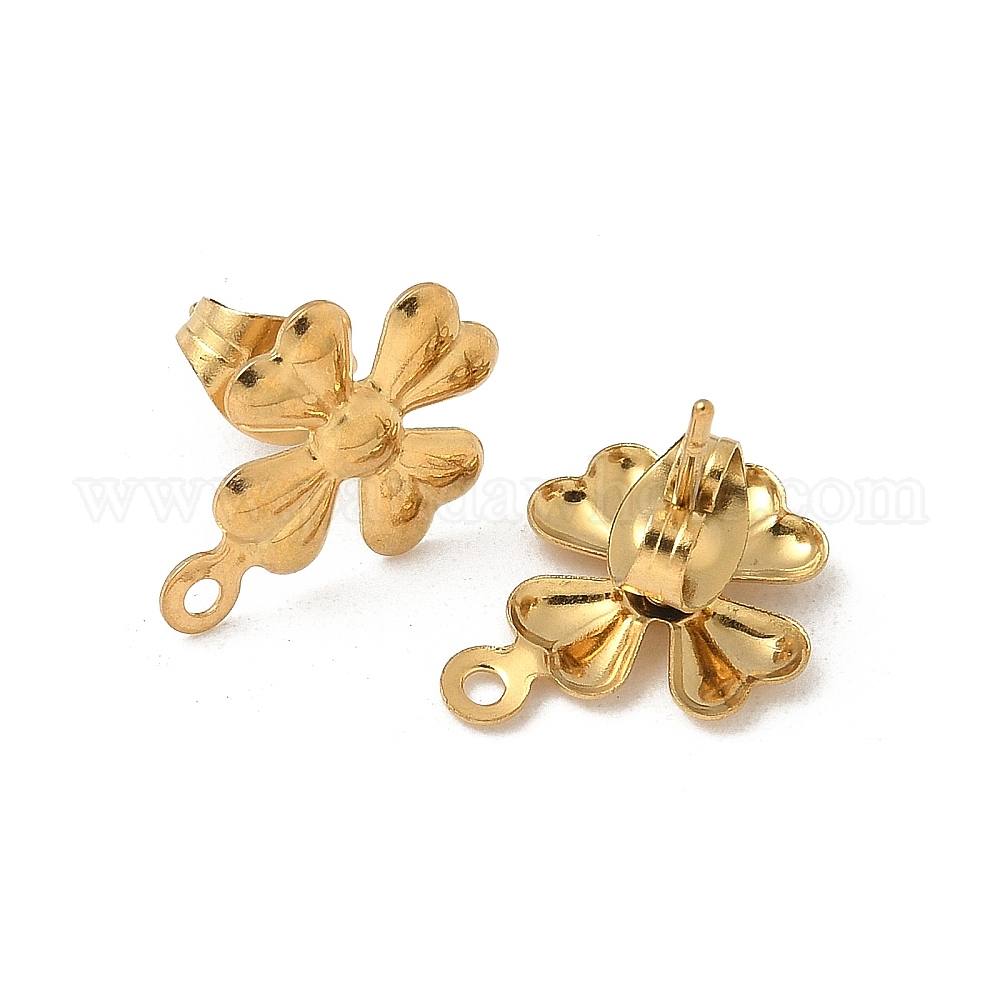 • Настоящее золото 18K 304 находка серег из нержавеющей стали, с горизонтальными петлями, ионное покрытие (ip), клевер, реальный 18 k позолоченный, 14.5x11 мм, отверстие : 1.2 мм, штифты : 1 мм
