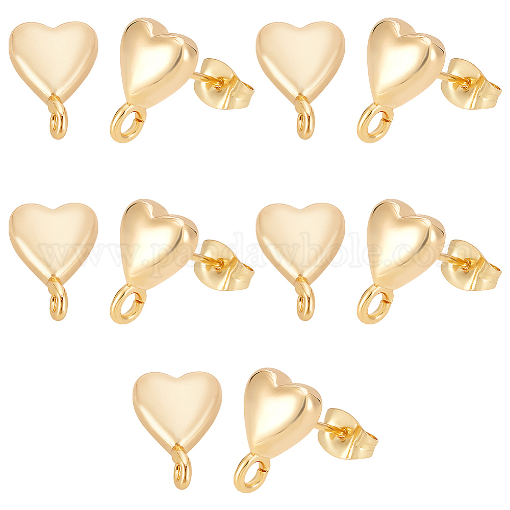 10 шт. латунные серьги-гвоздики, сердце, без никеля , долговечный, с 10 шт 304 ушными гайками из нержавеющей стали