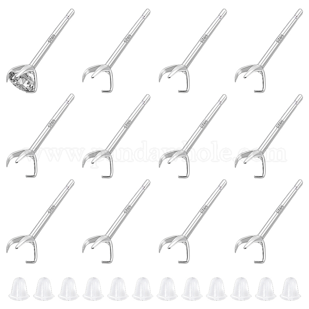 • Серебро 925 серебристые серьги, с замшевой тканью, квадратная салфетка для полировки серебра и пластиковыми ушками, серебряные, лоток : 4 мм, 14x5 мм, штифты : 0.6 мм, 6 пары