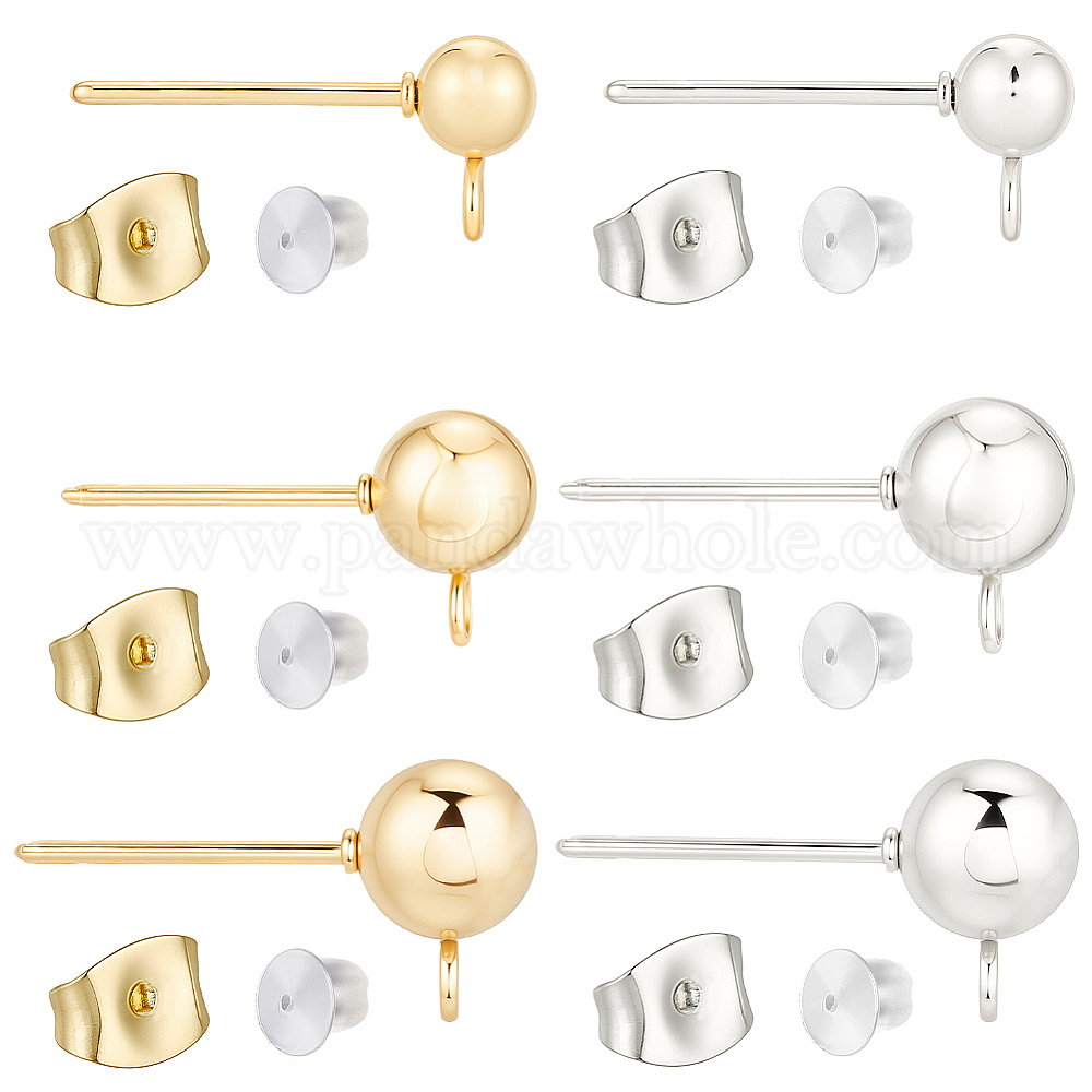 60шт 6 стили 304 фурнитура для сережек из нержавеющей стали, с петлей и ушной гайкой, с 60 пластиковыми ушными гайками