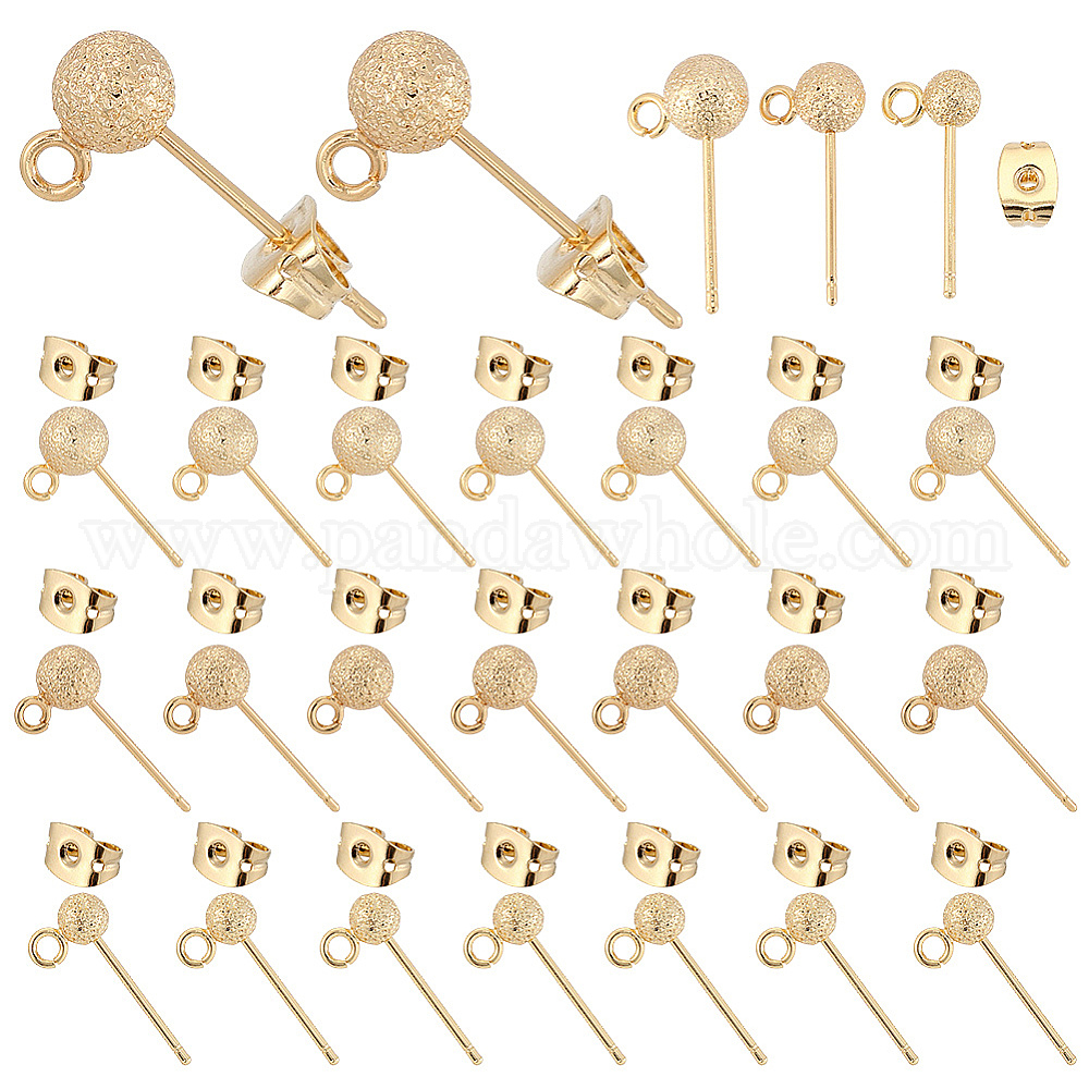Фурнитура для сережек-гвоздиков из латуни с шариками: 14.5~16.5x5~5.5мм, отверстие : 1.2 мм, штифты : 0.8 мм, 10шт.;