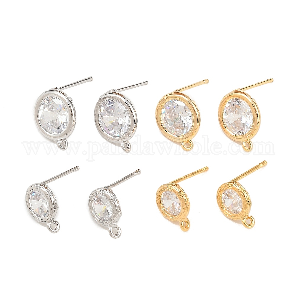 Латунные микро-паве прозрачные серьги-гвоздики из циркония, плоско-круглые, с петлей