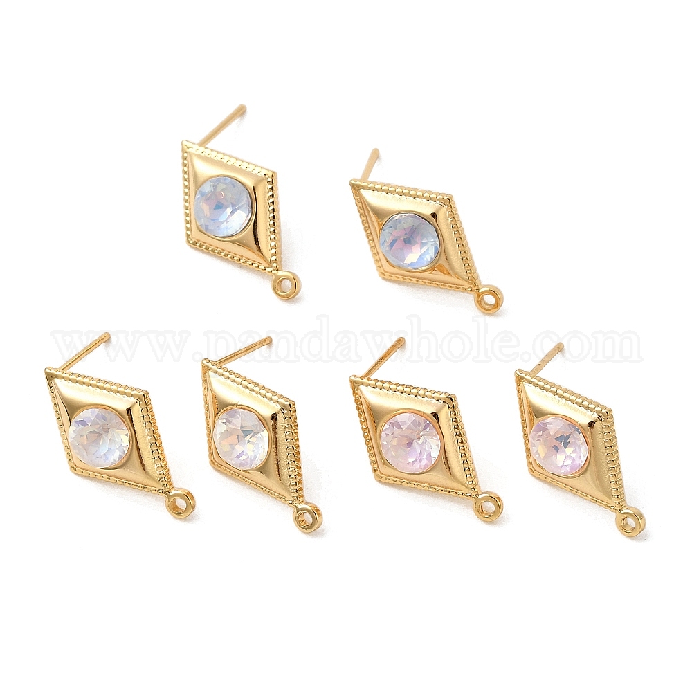 Находка для стеклянной серьги-гвоздика, ромб, с латунной фурнитурой , без никеля , реальный 18 k позолоченный