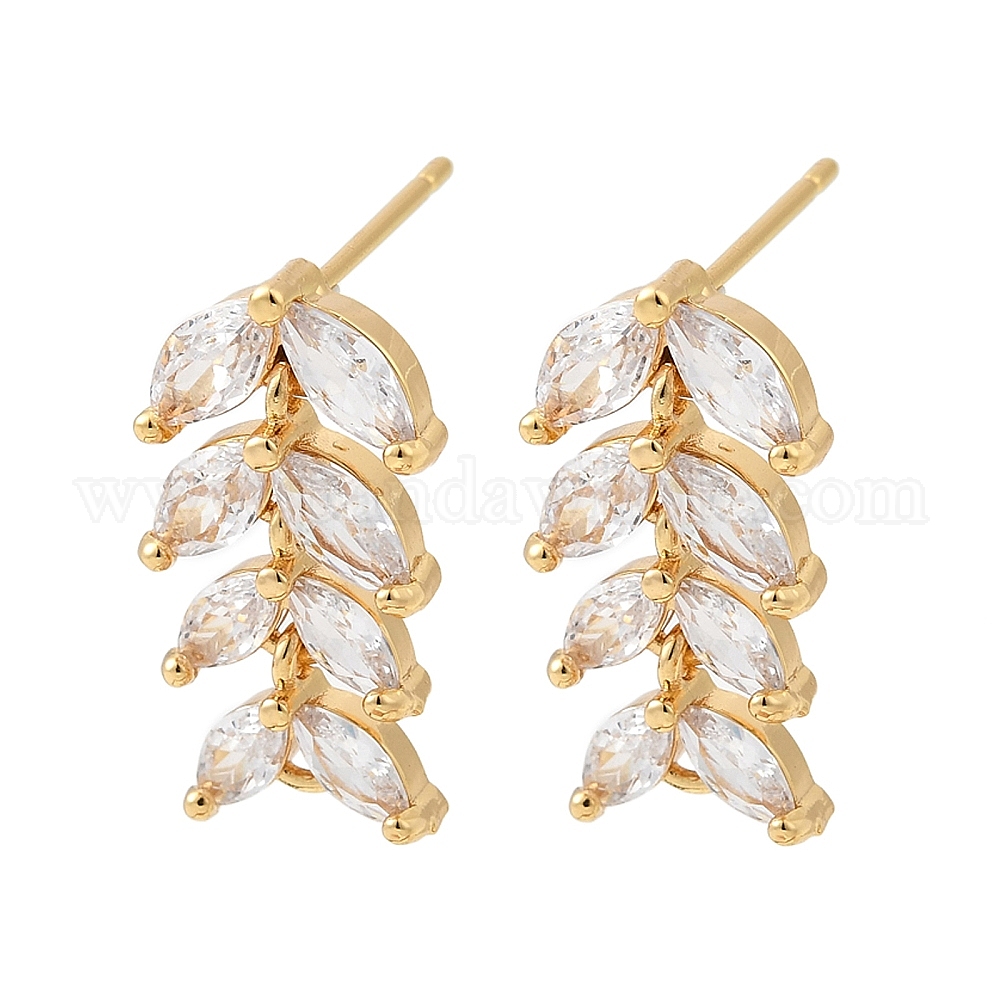 • Настоящее золото 18K Латунные микро-паве прозрачные серьги-гвоздики из циркония, лист, без никеля , реальный 18 k позолоченный, 18.5x10 мм, отверстие : 0.8 мм, штифты : 12x0.8 мм